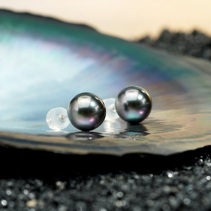 The with high luster, these real natural black pearls make an especially striking pair of earrings. Absolutely stunning and classic, each earring is crafted with 18K gold and is set with two round Tahitian pearls measuring 9-10mm.